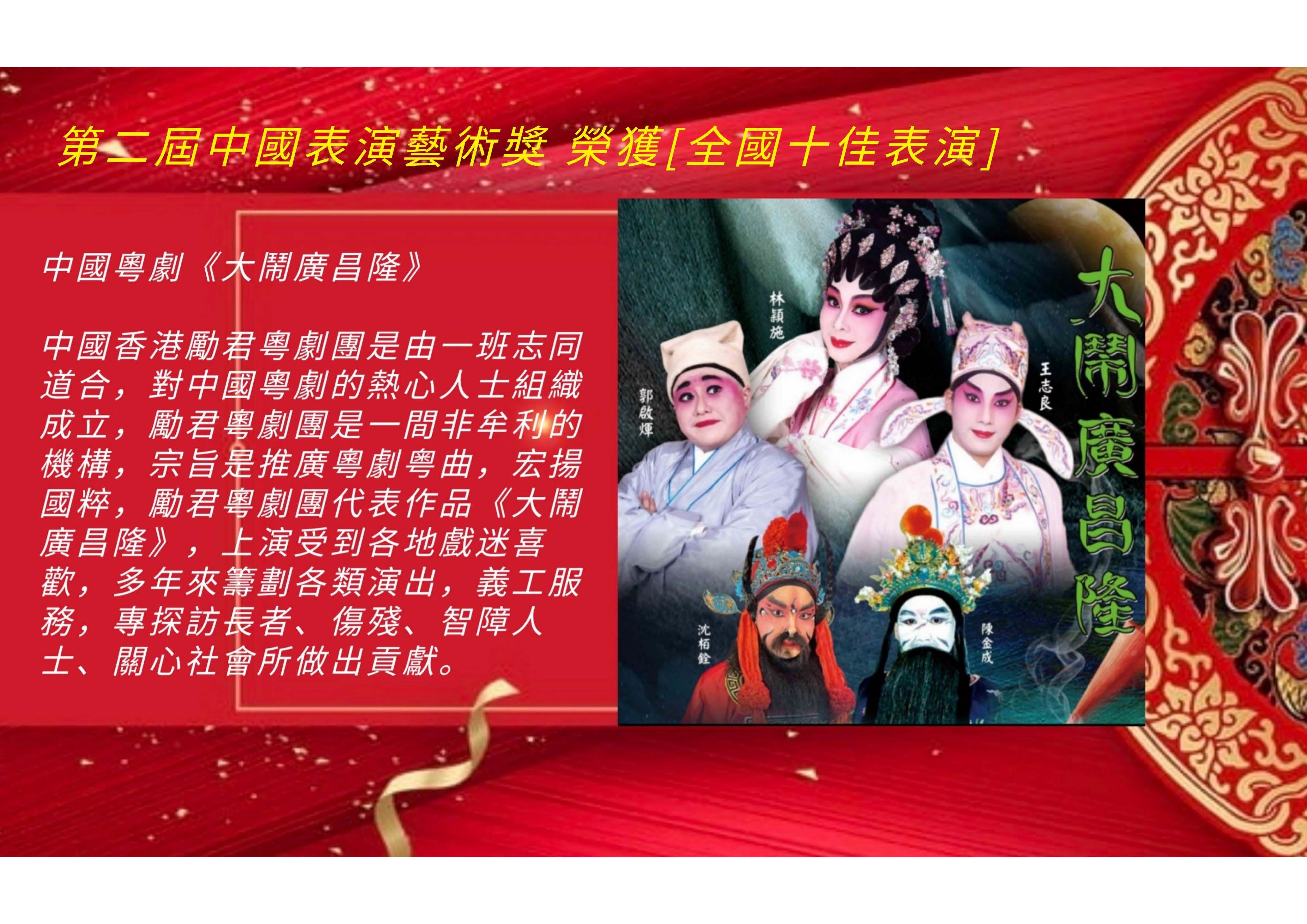 當晚的活動中,有超過300位來賓參與了一人一票的投票,選出了「最佳表演藝術獎」的得主。在眾多提名者中,粵劇演員謝國璋最終獲勝。