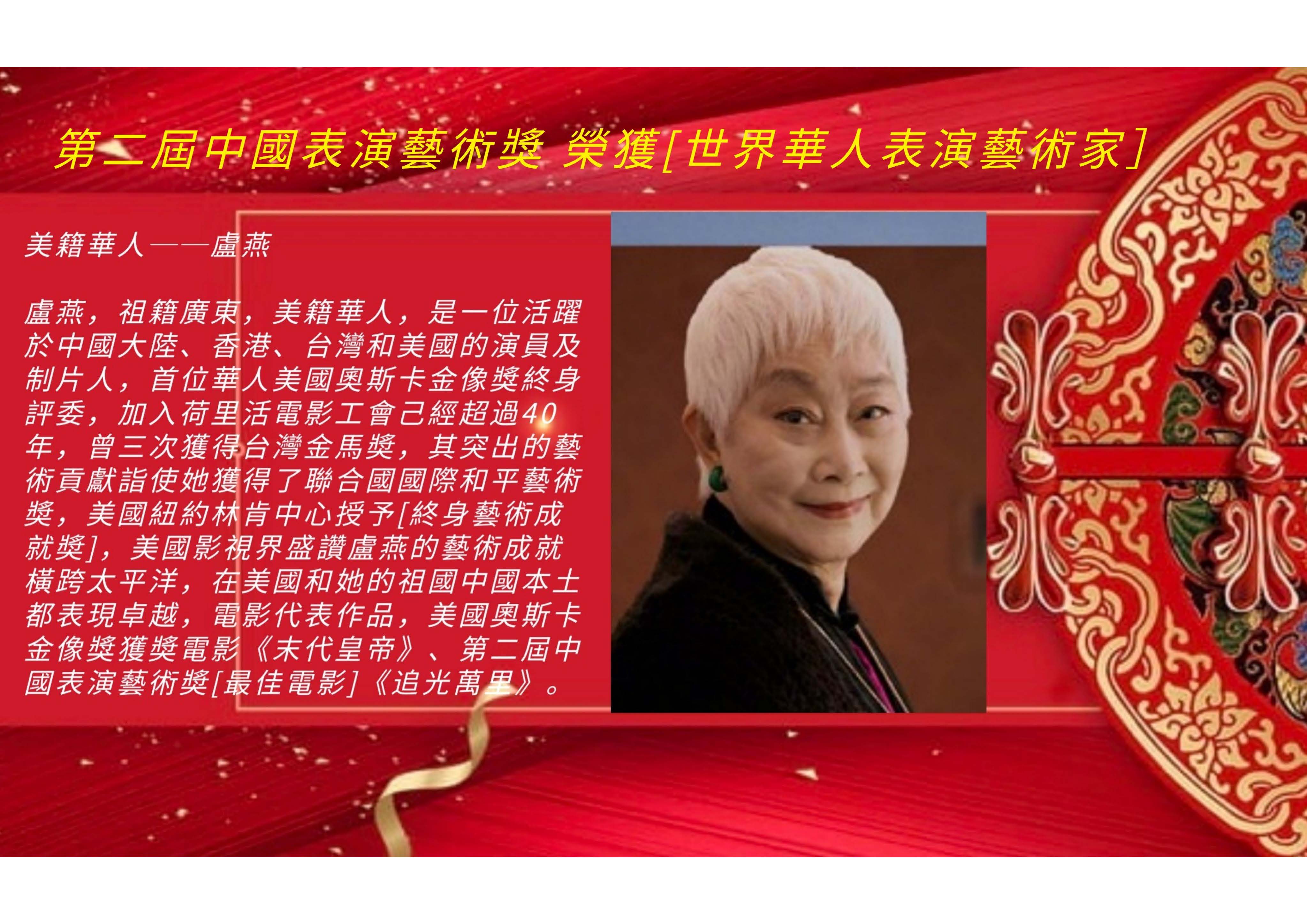 本次頒獎典禮的提名獎項包括「全國十佳表演」、「最佳表演」、「最佳導演」和「最佳電影」。香港電影金像獎配音大師丁羽榮獲本屆「傑出成就表演藝術家」獎項,而美國奧斯卡金像獎終身評委、聯合國國際和平藝術獎、美國華人影星盧艷榮獲本屆「世界華人表演藝術家」獎項。