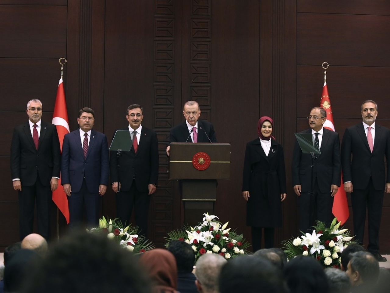 埃爾多安在國會舉行、電視實況轉播的儀式上宣誓:「我,身為總統,以我的榮譽和人格在偉大的土耳其國家和歷史前發誓,將捍衛國家的存在和獨立…恪遵憲法、法治、民主、(土耳其國父)凱莫爾的原則和改革,以及世俗共和國的原則。」