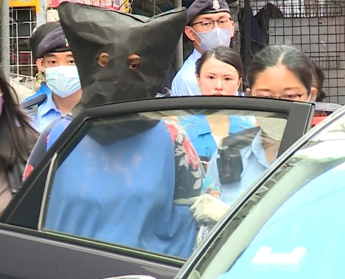 (中華新聞通訊社/中華時報6月6日訊)5日下午大約3時,女疑犯被黑布蒙頭、雙手鎖上手銬,從涉事單位被押解上警方私家車帶走。警方下午4時將會見傳媒交代案情。