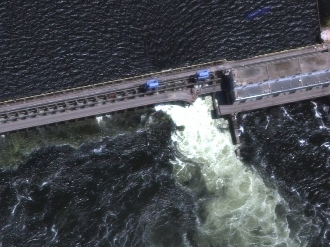 由俄羅斯推舉的卡霍夫卡市長表示,水電站大壩頂部在凌晨2時許遇到多次襲擊受損。烏克蘭一方指控是俄軍所為。赫爾松地方官員表示,現正展開疏散行動,警告水位會達到危險水平。