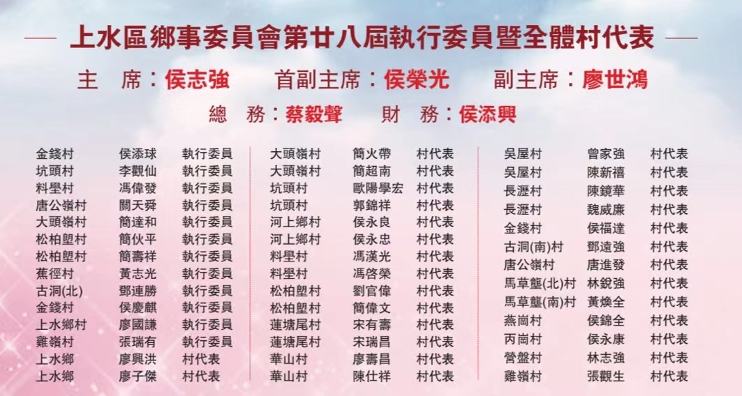 一路风情国际编辑精选 慶祝香港特別行政區回歸祖國26週年暨上水區鄉事委員會就職典禮 由 中華時報總編室 - 2023年6月10日 (中華新聞通訊社/中華時報6月9日訊)慶祝香港特別行政區回歸祖國26週年暨上水區鄉事委員會就職典禮於6月9日在香港百樂金宴國際廳隆重舉行,出席主禮嘉賓有中聯辦新界部負責人、立法議員等。 據悉,上水區鄉事委員會舉行選舉,選出了主席侯志強,首副主席榮光,以及副主席廖世鴻。 據悉,典禮現場熱鬧非凡,會場設有超過百席。這也是上水區鄉事委員會首次離開上水鄉,在百樂宴會廳舉行就職典禮。中華時報媒體集團主席、香港藝術學院院長曾曉輝教授等受邀出席了該活動。
