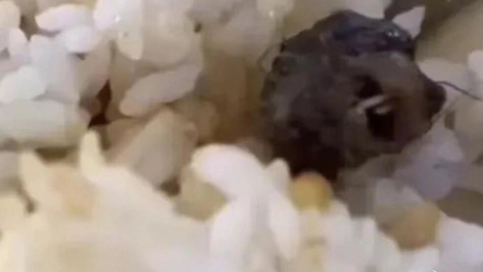 其實,6月1號吃到“老鼠頭”的學生當即拍攝了現場照片和短片,短片清晰顯示,飯菜里的一塊黑色異物看起來像極了老鼠頭,不但有眼睛,鬍鬚,還有嚙齒類的犬齒。