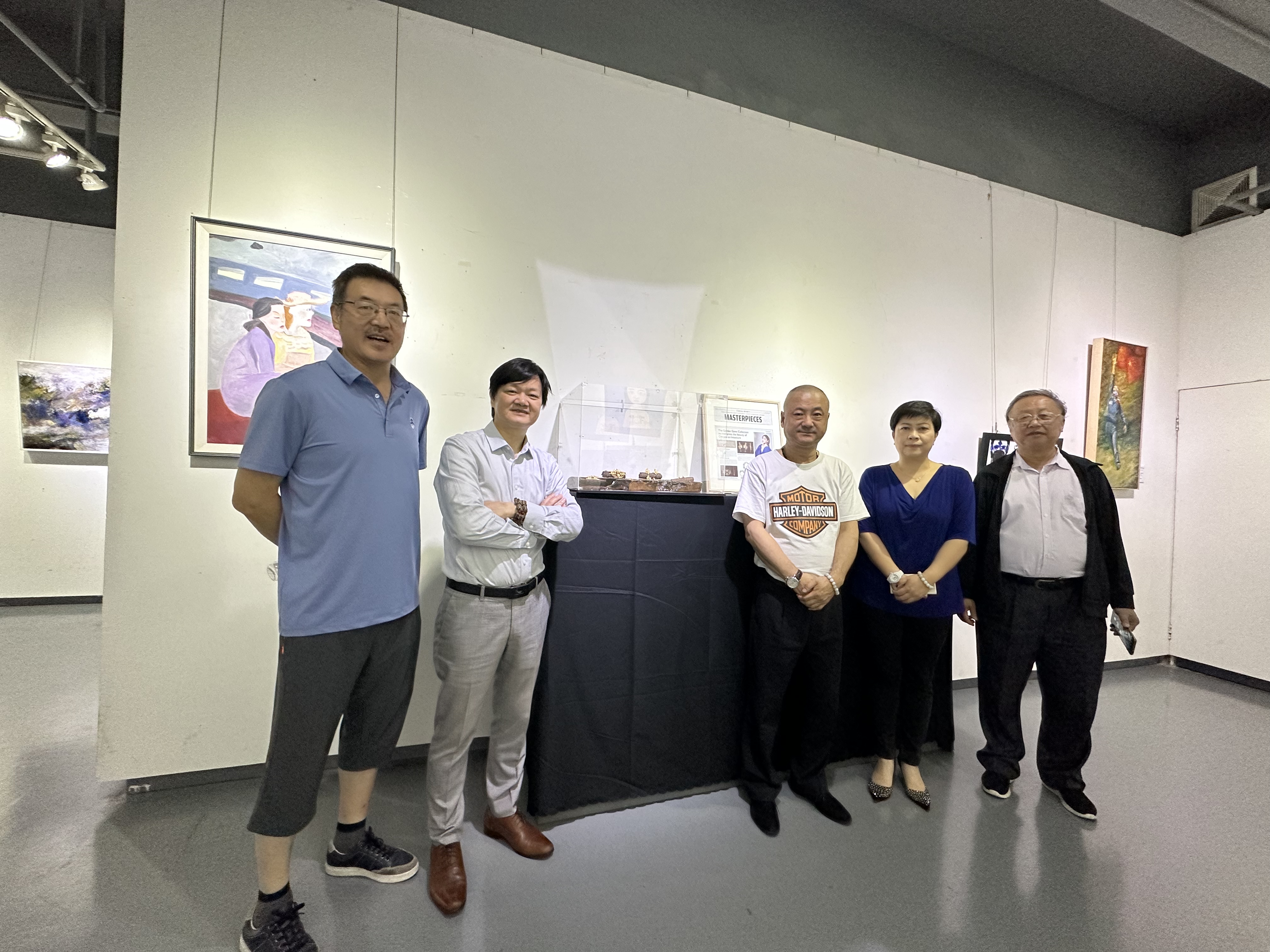 主禮剪彩嘉賓:(由左到右)廣州醫科大學原黨委書記翁宗奕教授、廣東省流行音樂協會主席高翔、新華社香港分社原社長俱孟軍、中國書畫家聯誼會原駐廣州辦事處主任孫偉民、音樂家陳小奇、國際城市文化論壇組委會主席曾曉輝教授、解放軍總政聯絡部原副部長藍曉石將軍、聯合國NGO太平洋地區發展與教育組織亞太區總幹事長趙元洪、江蘇省美術家協會原副主席尹石、香港美術學院副院長全心教授。