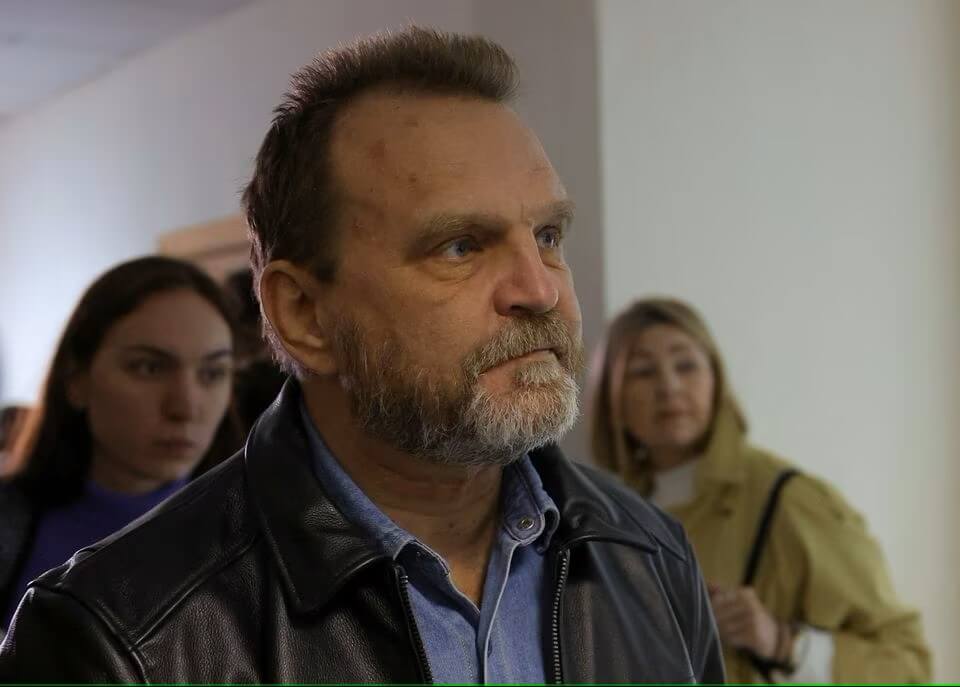 馬斯考列夫(中)因女兒在學校畫了一幅反戰圖畫遭判刑。(路透社)