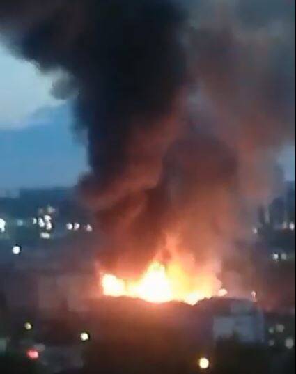 推特帳號「@region776」PO出2段影片,影片中遠方的建築物正在冒出熊熊火焰,黑色濃煙直竄雲霄,「@region776」在推文中表示「莫斯科市區的一個彈藥倉庫起火。」