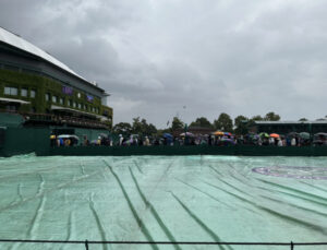 中华时报:7月4日,温网开赛第二日,可谓是阴雨绵绵的一天。69场比赛被迫取消。