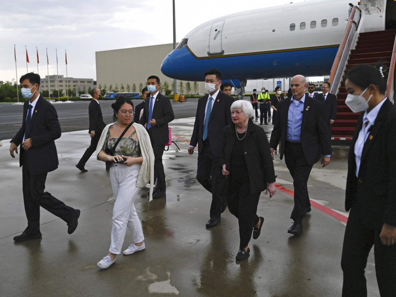 耶倫抵達北京後,在機場受到中國財政部官員和美國駐華大使尼克·伯恩斯(Nick Burns)低調的歡迎。不過在耶倫的專機降落前,北京剛剛下了一場大雨,為連續多日的超高溫炎熱天氣稍稍降溫。