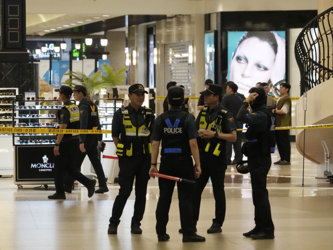 城南市一間購物中心昨日發生持刀傷人案,大批警員到場調查。(美聯社資料圖片)