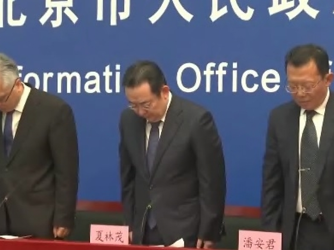 北京市召開防汛救災工作情況發布會,現場人士全體起立為遇難者默哀。