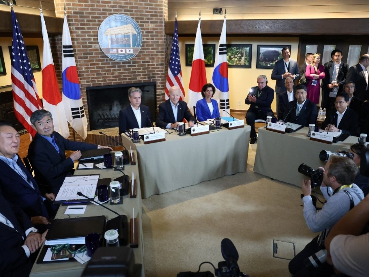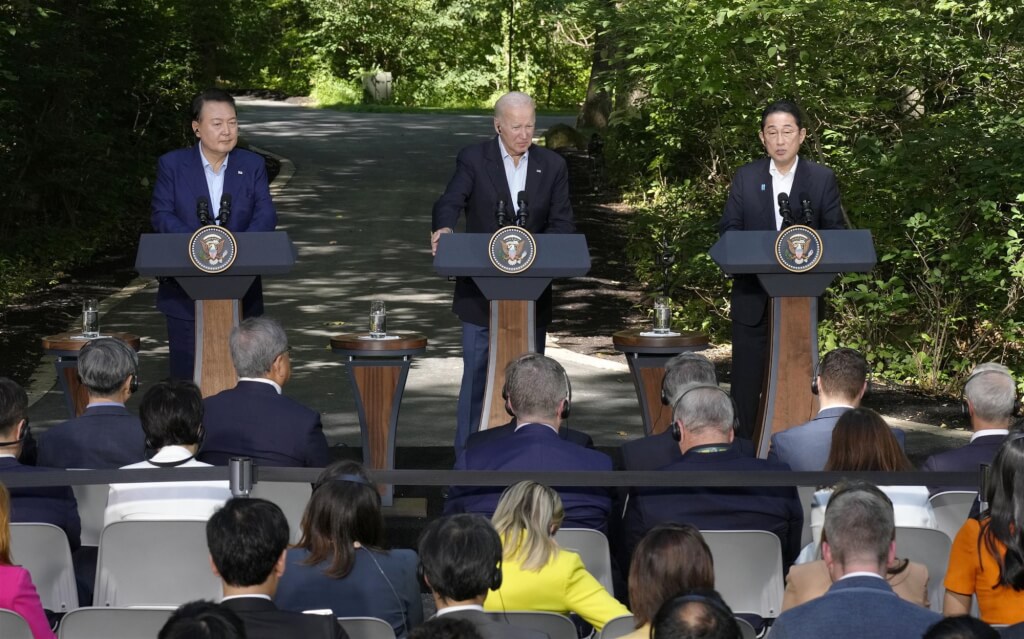 拜登在大衛營(Camp David)歡迎到訪的日本首相岸田文雄與南韓總統尹錫悅,三方召開領袖峰會,也個別舉行雙邊會談。