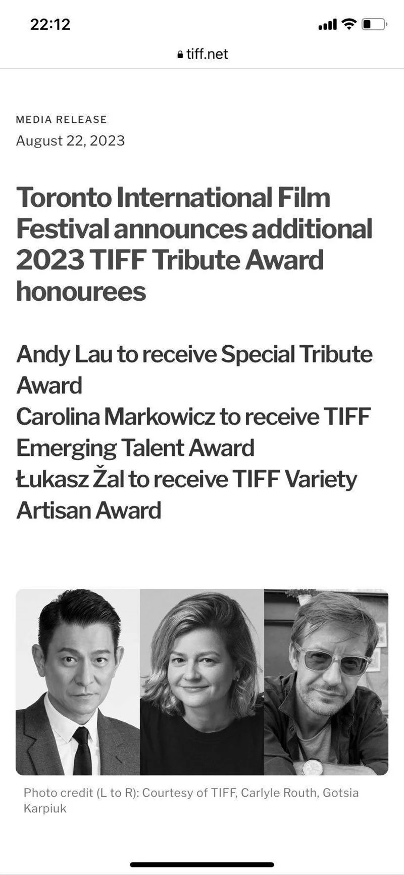 今年是多倫多國際電影節第五屆頒發特別獎項,過去獲頒「特殊貢獻獎」的藝人有着名加拿大鋼琴家兼音樂製作人霍士達( David Foster詢譯)和美國影視紅星戴安妮(Dionne Warwick音譯),而劉德華則是首位獲此殊榮的華人。