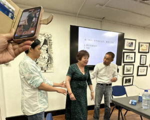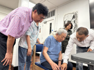 伦敦侨界热线慈爱人称好人好姐的Mary Ma女士、英国健身气功联合会王海矛会长九十岁的老母亲、明爱学院前教务长王俊芳等书友先后走上前台,在本次活动组织成员明持女士及佳祺小姐协助下,在出席书友们的见证下,现场接受李医师诊疗,均立竿见影、收到不俗的疗效。