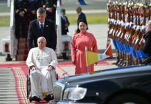 (中華新聞通訊社/中華時報9月1日訊)羅馬天主教教宗方濟各(Pope Francis)週五(9月1日)抵達蒙古,展開歷史性的訪問。方濟各搭乘了9個小時的飛機,自羅馬起飛,經中國領空抵達蒙古首都烏蘭巴托。按梵蒂岡禮節,教宗在飛越他國時須向其領導人發送問候。分析人士人表示,方濟各此行不但像徵不遺漏廣闊草原上為數不多的天主教徒,也指望能促進梵蒂岡與中國和俄羅斯的關係方面。