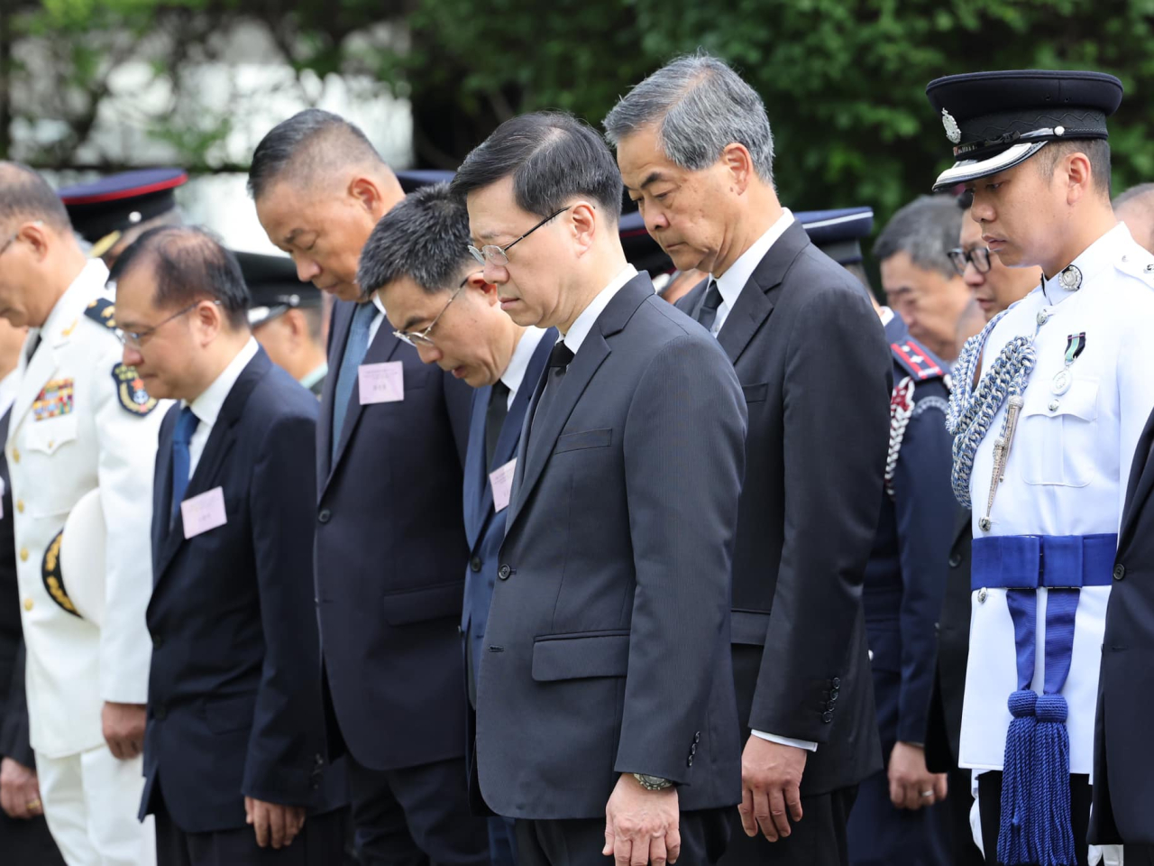 (中華新聞通訊社/中華時報9月3日訊)特區政府在香港大會堂紀念花園舉行儀式,紀念中國人民抗日戰爭勝利,行政長官李家超與政府高層官員等人出席。