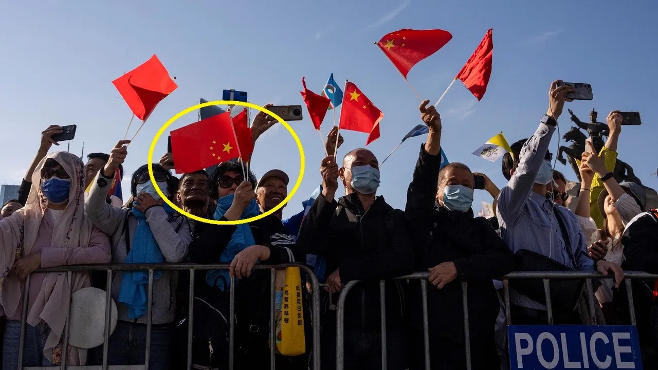 在烏蘭巴托的中心廣場,有信徒展開中國國旗。法新社說,許多前來看教皇的中國人,為了避免被認出,都蒙住了頭,把臉藏在外科口罩和太陽鏡後面。