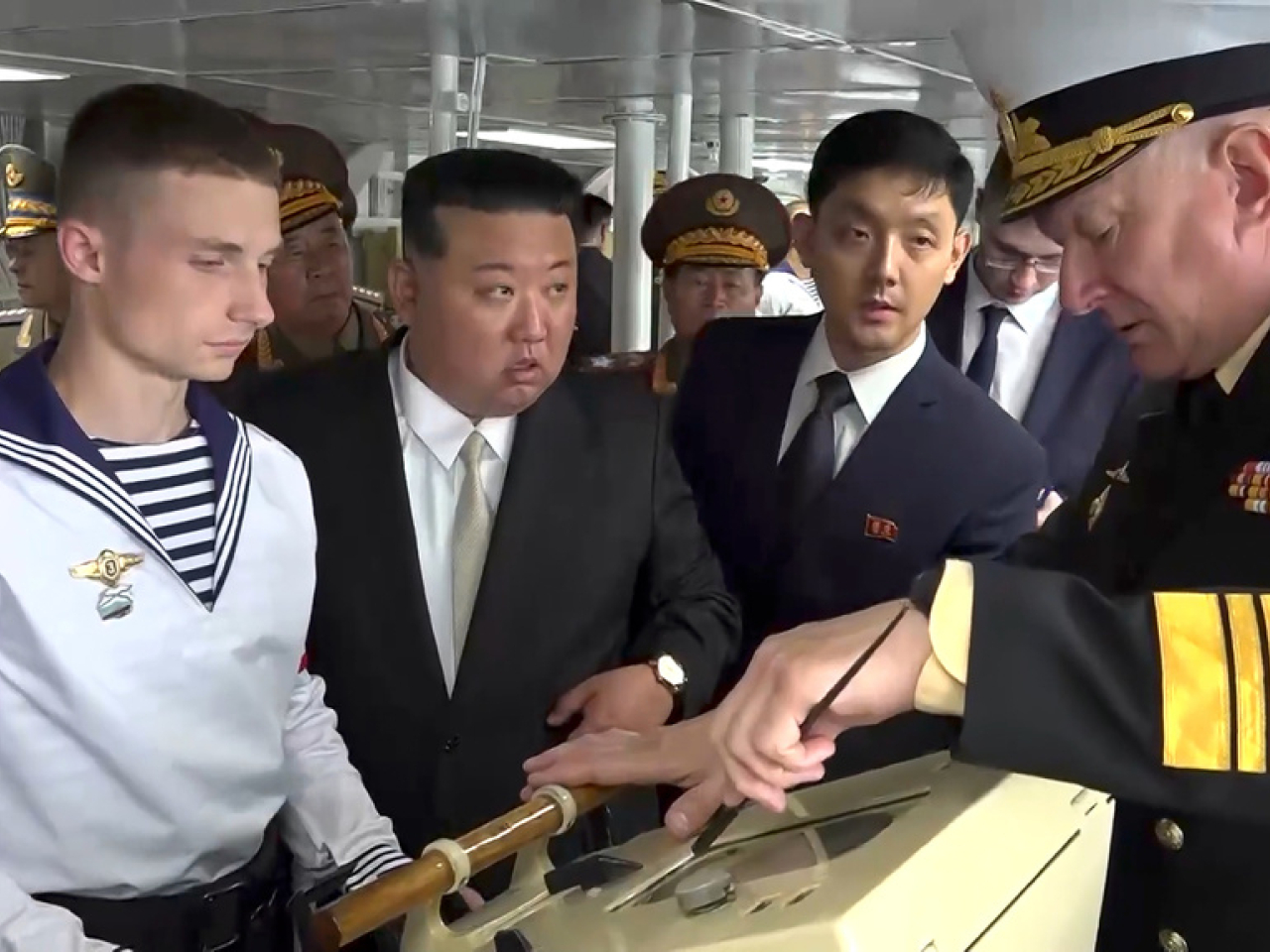 金正恩之後在紹伊古陪同下,登上俄羅斯太平洋艦隊的沙波什尼科夫元帥號護衛艦,俄羅斯海軍總司令葉夫梅諾夫,向金正恩介紹護衛艦的性能和反潛武器。