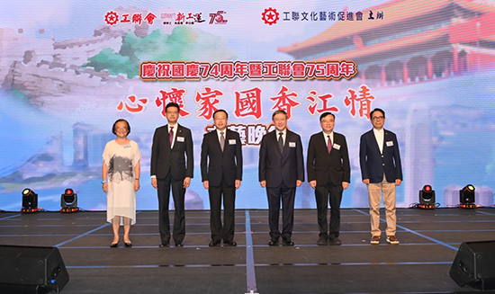 工聯會今晚(9月17日)假座香港灣仔伊利沙伯體育館舉辦慶祝國慶74周年暨工聯會成立75周年《心懷家國香江情》文藝晚會,一眾優秀表演者獻上才藝,包括藝人演唱、步操樂隊、樂器演奏、舞蹈丶功夫雜技丶青少年粵劇等等,現場氣氛熱烈,為逾2000多名會友、市民帶來豐富的節目,共慶國慶及會慶。