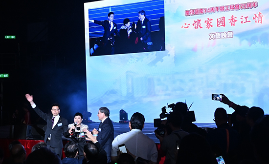 晚會由氣勢磅礴的步操樂隊開場,現場奏唱國歌。開幕儀式上,主禮嘉賓手拿毛筆,共同為電子畫卷點墨,在現場觀眾見證下拉開晚會帷幕。晚會為觀眾帶來一場視聽盛宴,有葫蘆絲名曲、傳統舞蹈、功夫、粵劇等不同表演,還有星級唱匠的精彩演出。殿堂級歌手陳潔靈獻唱《千個太陽》時,並邀請卓永興和吳秋北一起走到台下手牽手合唱,全場觀眾激動歡呼,一開場就將氣氛推到高潮。