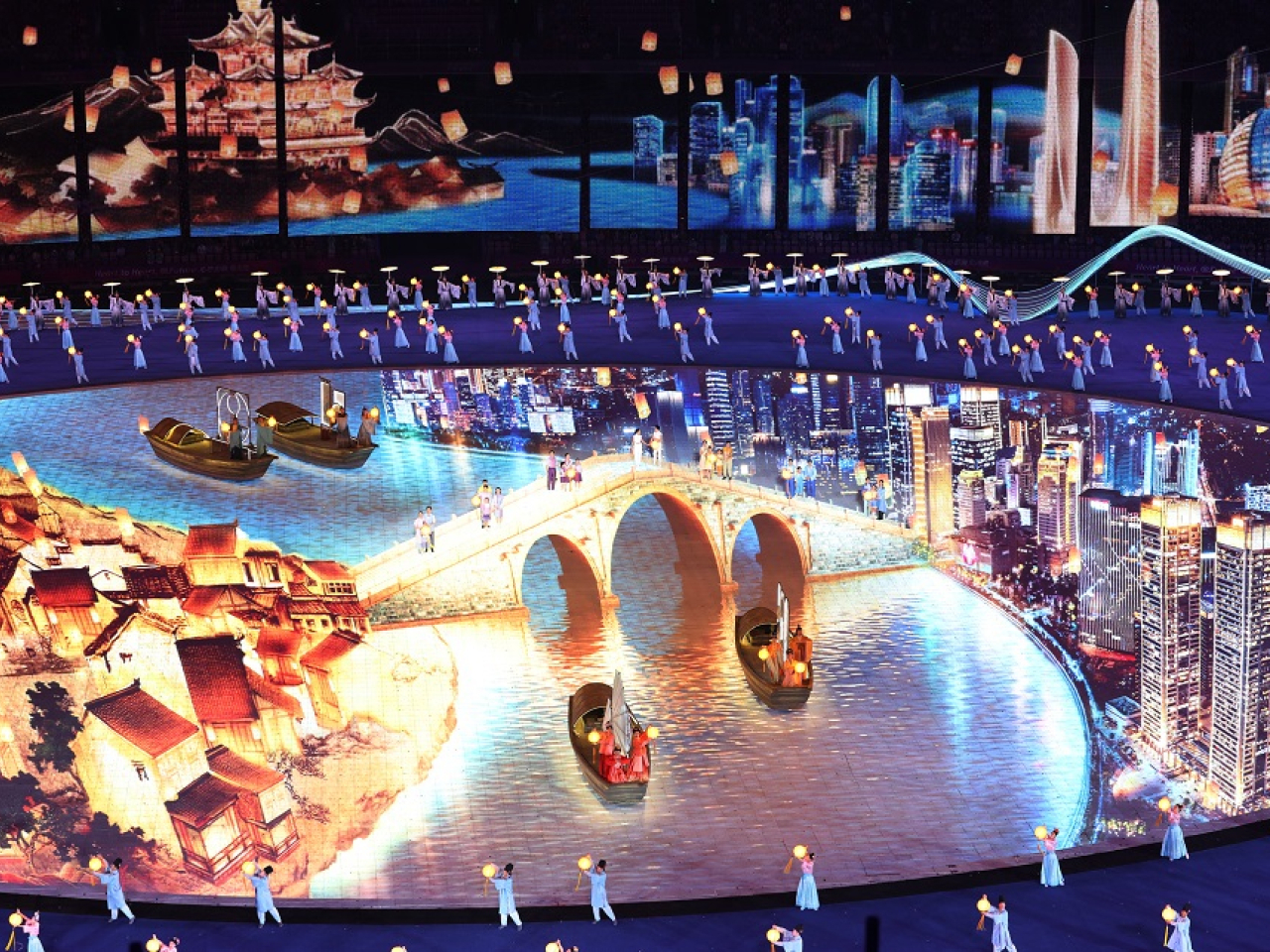 新華社稱亞運開幕式融合科技與藝術。(新華社)