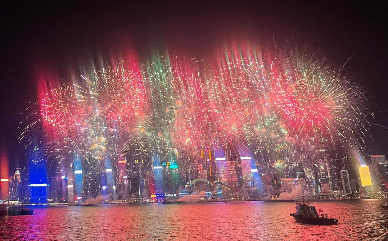 國慶煙花匯演於晚上9時在維港夜空上演,行政長官李家超致辭時表示,今晚的煙花象徵香港越過難關之後,全面復常向前邁進,大步踏進更美好的未來。