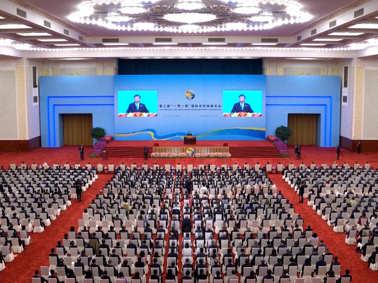 習近平表示,共建「一帶一路」堅持共商共建共用,跨越不同文明、文化、社會制度、發展階段差異,開闢各國交往的新路徑,搭建起國際合作的新框架,彙集著人類共同發展的最大公約數。