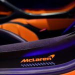 “竞速时刻”主题迈凯伦Artura拥有独特的定制内饰,采用双色漆黑和迈凯伦橙真皮座椅,辅以对比醒目的天空蓝(Sky-Blue)皮革装饰。“MCL36”字母在座椅靠枕上以蔚蓝(Cerulean Blue)刺绣呈现,辅以碳黑色线缝轮廓。作为进一步的点缀,“竞速时刻”主题迈凯伦Artura采用了迈凯伦特别定制中心(MSO)扩展的车门槛,以哑光碳纤维饰面,但采用了一个独特的变化。迈凯伦的标志被漆成迈凯伦橙,在标志旁还列出了迈凯伦车队取得胜利的年份,使用镭射蓝(Iridium blue)绘制,为纪念每一届迈凯伦F1冠军殊荣。