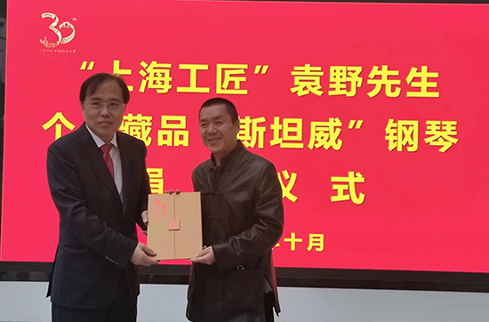 (中華新聞通訊社/中華時報丁白 陳茜 ) 10月20日,是上海中僑職業技術大學建校30周年紀念日。爲祝賀中僑職業技術大學建校30周年,作爲學校特聘客座教援的上海工匠、畫家袁野,將壹架珍藏多年的德國19世紀産的宮廷鋼琴(斯坦威鋼琴前身)捐贈給了該校藝術學院。校慶當天,上海中僑職業技術大學藝術學院舉辦了隆重的捐贈儀式。中僑大學霍校長親自代表大學頒發捐獻證書,藝術學院院長孔錦發表了熱情洋溢的講話,高度評價袁野先生的無私捐獻及其支持高校藝術教育的超然胸襟。