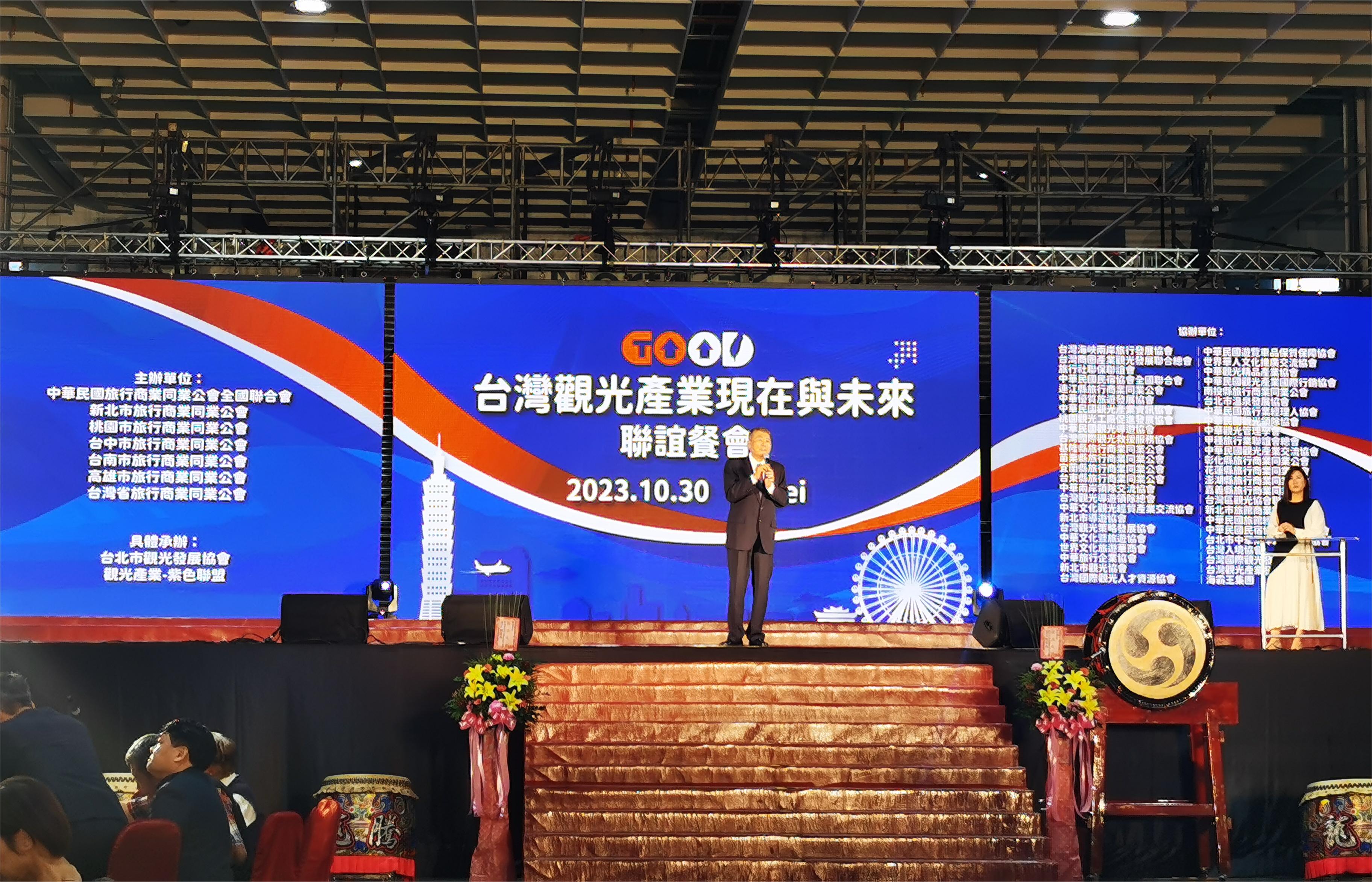 【記者王輝丹/臺北報導】中華民國旅行商業同業公會全聯會,以及新北、桃園、臺中、臺南及高雄旅行公會、中華民國旅行業品質保障協會、台灣海峽兩岸旅行發展協會等多個觀光公會團體,於昨(卅)日在南港展覽館盛大舉行「台灣觀光產業的當下與前景」聯誼盛宴。盛會席開七百桌,新北市市長侯友宜作為特別嘉賓到場,現場氣氛熱烈,宛若選舉造勢大會。