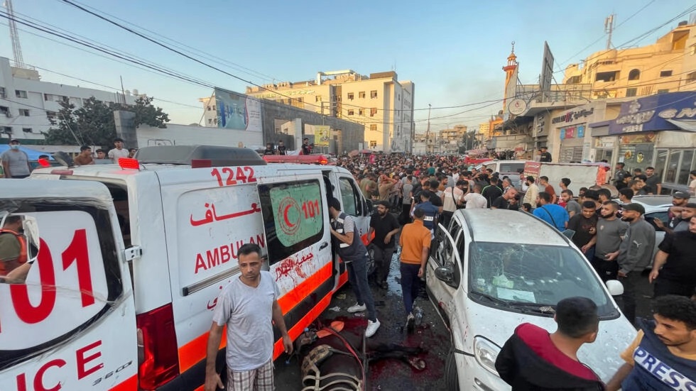 據加沙哈馬斯政府周五稱,以色列空襲擊中救護車車隊,這次襲擊發生在加沙最大醫院附近,造成數十人傷亡。消息稱,目前有數千人在此避難,而法新社記者在周五的襲擊後看到一輛救護車旁邊有幾具屍體和受傷人員。