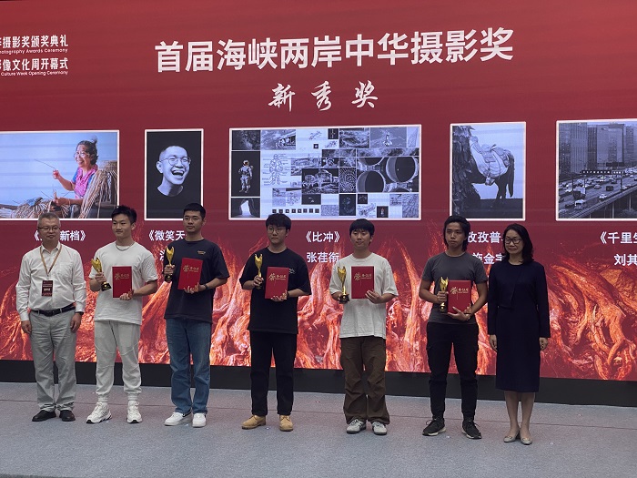 ▲首屆海峽兩岸中華攝影獎銀獎頒獎現場,台灣何南輝、張鑫、胥昆德獲獎。【圖文:莊翱宇】