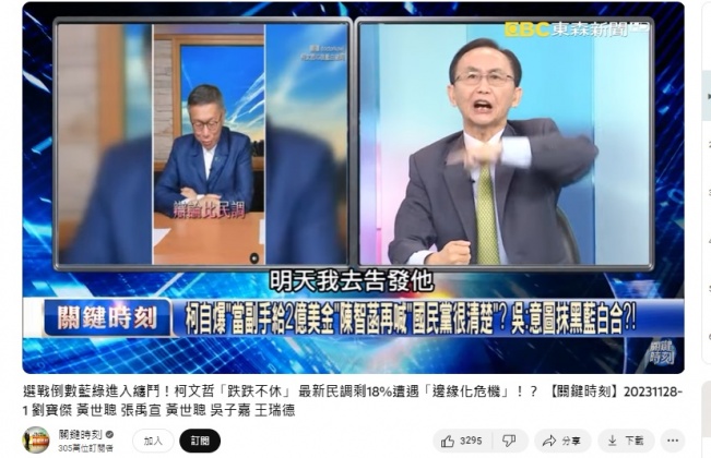 談及兩大可能性,吳子嘉認為,第一是「柯文哲編故事造謠」,目的是意圖使國民黨總統參選人侯友宜不當選,柯文哲就違反《選罷法》。第二種可能性,他說,柯文哲屆時告訴檢察官是何人要給他2億美金,那人就違反《選罷法》,「意圖使人不當選」,但要搞清楚就是要告發,再度放話「小弟去北檢告發你!」