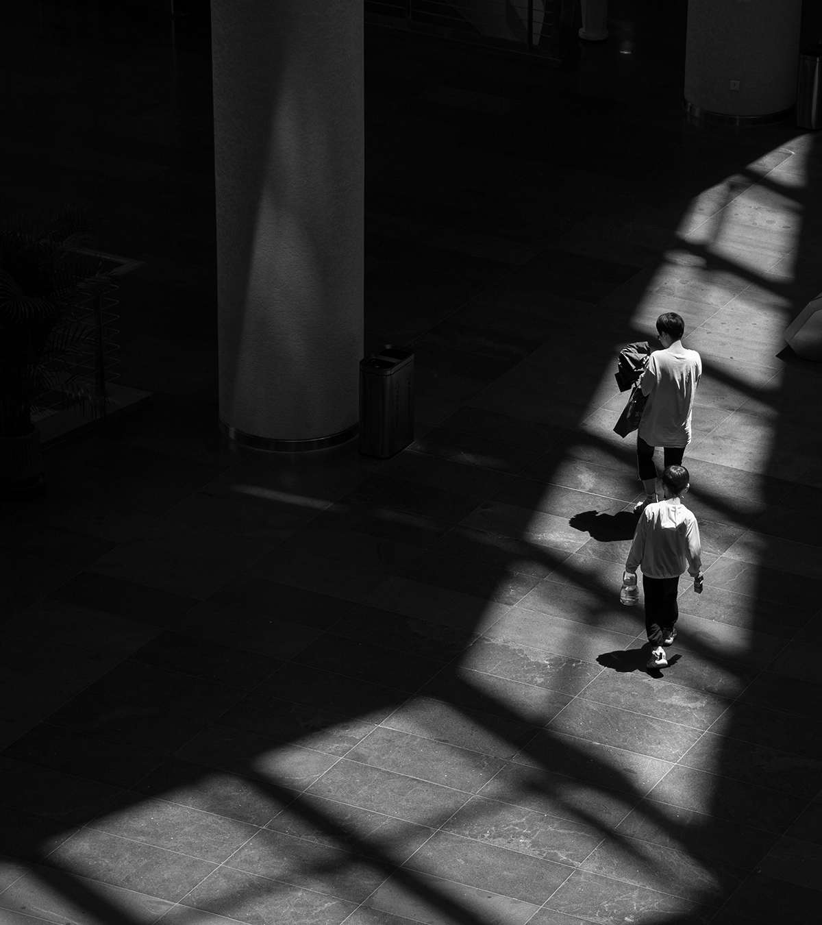 作品簡介:拍攝於山西太原。陽光透過屋頂的玻璃照射在地面上,仿如形成一把樹立的直梯,行走在「光梯」感到溫暖且向上。