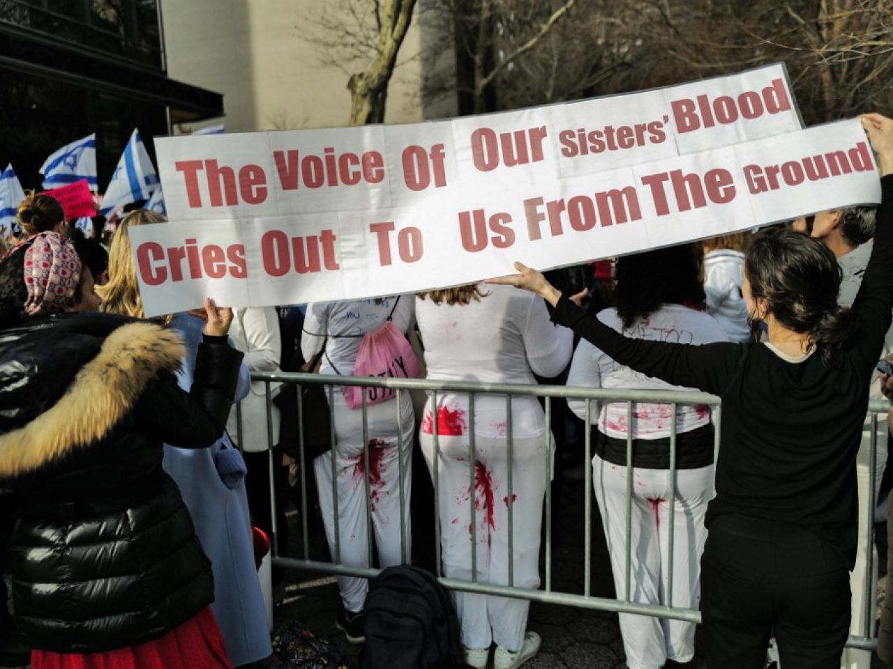 (中華新聞通訊社/中華時報12月5日訊)一批猶太婦女及她們的支持者在聯合國總部外遊行,抗議聯合國對哈馬斯武裝分子殘暴對待以色列婦女未有採取任何行動。