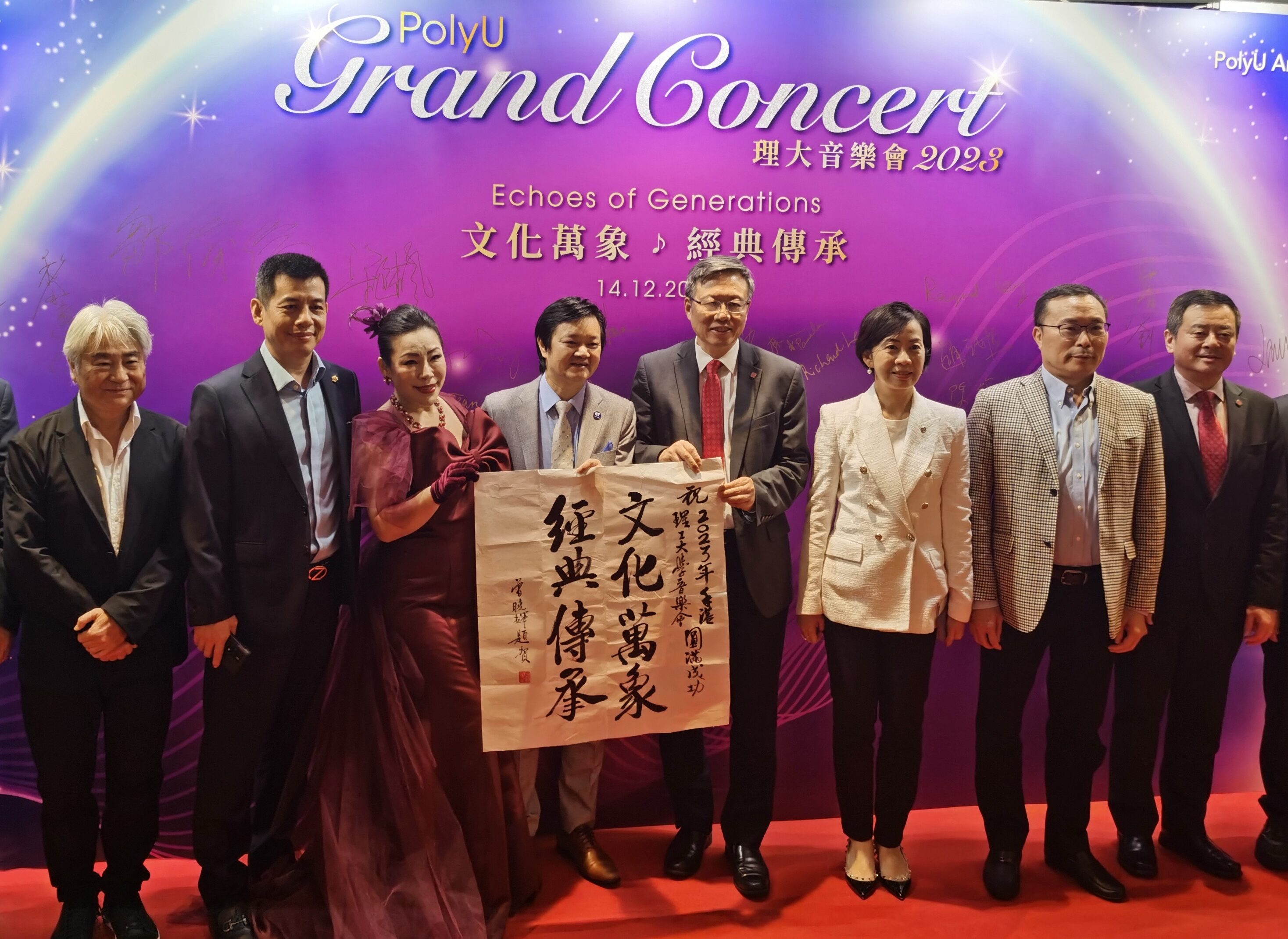 重要嘉賓:在音樂會開始之前,中華時報傳媒集團主席、香港美術學院院長曾曉輝教授受邀出席,並向理工大學校長贈送了一幅慶賀書法。
