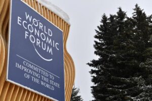 这是1月19日在瑞士达沃斯拍摄的世界经济论坛标识。为期5天的世界经济论坛2024年年会19日在瑞士达沃斯落下帷幕。众多与会人士呼吁重建信任,携手应对全球不确定性的挑战。新华社记者 连漪 摄