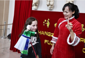 正月初一,埃菲尔铁塔脚下的“建筑与遗产之城”博物馆展厅内上演了福建漳州木偶剧团带来的传统布袋木偶戏。剧团向观众送上新春祝福,演员身穿龙纹唐装,向观众展示木偶“舞狮”,赢得阵阵掌声。