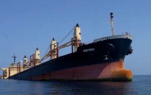 这张拍摄日期不明的照片显示了英国货轮“鲁比马尔”号沉没前的景象。新华社发(也门政府供图)
