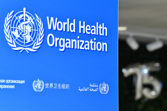 图为2023年4月6日在瑞士日内瓦世界卫生组织总部拍摄的世卫组织标识。(新华社记者连漪摄)