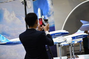2月20日,在樟宜会展中心举行的新加坡航展上,观众在波音公司展台观展。新华社发 (邓智炜摄)
