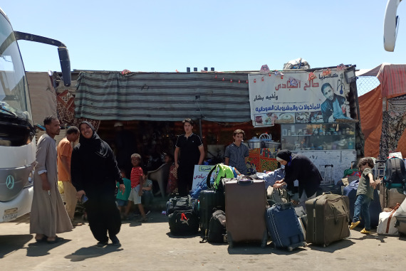 2023年5月2日,逃离苏丹的难民抵达埃及南部阿斯旺省的一处汽车站(手机拍摄)。新华社发(拉德万摄)