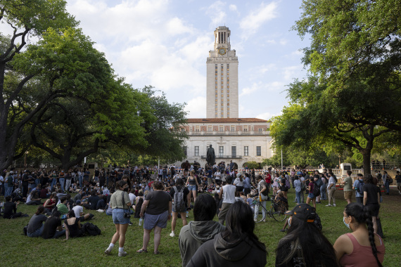 4月24日,人们在美国得克萨斯大学奥斯汀分校校园里举行集会。新华社发(克里斯托弗·达维拉摄)