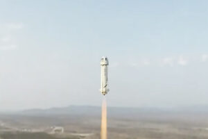 这张美国蓝色起源公司2021年7月20日发布的视频截图显示“新谢泼德”飞行器从美国得克萨斯州西部一处发射场升空。新华社发(蓝色起源公司供图)