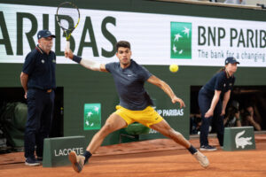 新华社巴黎5月26日电(记者刘旸 肖亚卓) 26日,在法国网球公开赛首轮较量中,男单3号种子、西班牙名将阿尔卡拉斯直落三盘轻取美国选手沃尔夫,强势晋级;前世界排名第一的英国老将穆雷不敌另外一位大满贯冠军、瑞士名将瓦林卡,无缘下一轮。