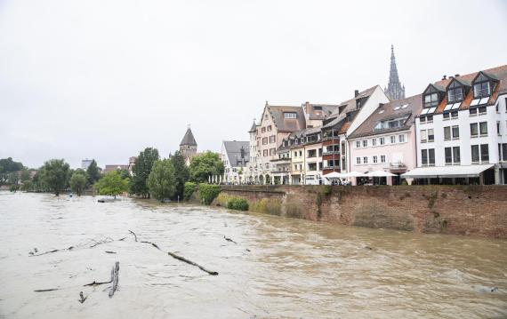 近日,巴伐利亚州、巴登-符腾堡州等德国南部部分地区遭遇强降雨。多瑙河、内卡河、金茨河等多条河流水位上涨,多处决堤,沿岸大量城市和村镇遭洪水侵袭。截至当地时间2日凌晨2时,德国气象局向南部14个地区发布最高级别的恶劣天气警报,并预测接下来24小时内南部多地将有更多暴雨。