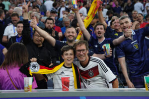 本届欧锦赛的10个举办地都在城市核心区设置了球迷聚集看球的公共区域。德国队在当天的揭幕战中5:1大胜苏格兰队,许多城市的球迷区人满为患,当地警察采取各种措施疏导球迷人群,管控风险。