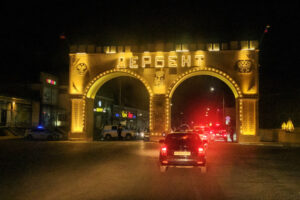 6月23日,在俄罗斯达吉斯坦共和国杰尔宾特市,警察在进城道路旁警戒。新华社/塔斯社