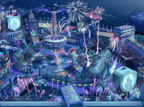 新推出的夜间版海报,被定义为“真正的收藏品”,将于7月25日,即奥运会开幕式前一天开始在线销售。在这一限量的夜巴黎版“塞纳上河图”中,新的反光效果、灯光效果和烟花为海报增添了节庆的气氛。