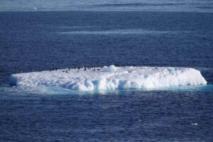 这是2019年2月15日拍摄的南极小冰山上的企鹅群。新华社记者刘诗平摄