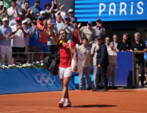 7月29日,纳达尔在赛后向观众致意。新华社记者 万象 摄